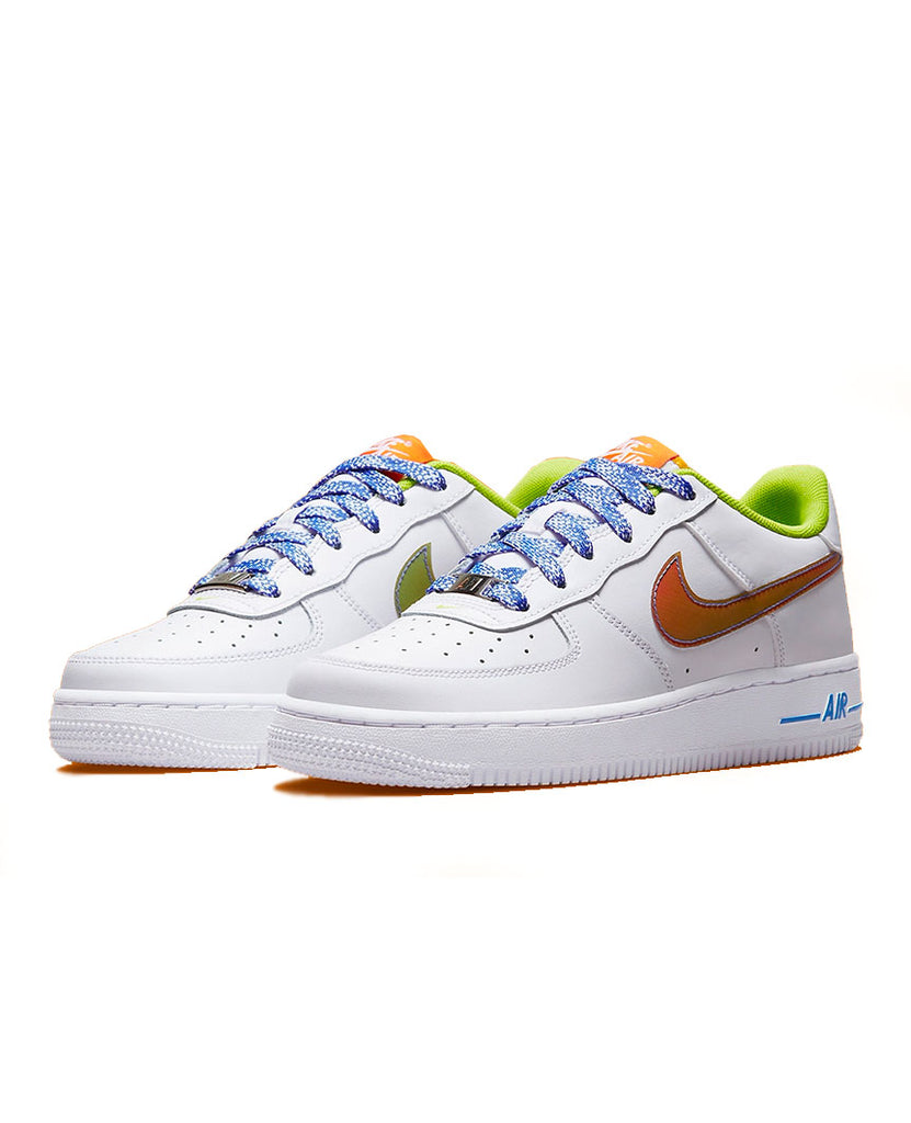 Likely a kids-exclusive, the colorway opts for a look that’s playful even beyond its check. Almost NERF-like, the palette begins with a pop of neon green, its collar placement sitting right in the middle of the blue laces and insole. Also adjacent, the tongue label and its backside offer similar energy by way of an orange shade, this further adding to an upper that would otherwise be “Triple White.” Finally, all culminates with the side logo whose exterior blends together all of the aforementioned hues.