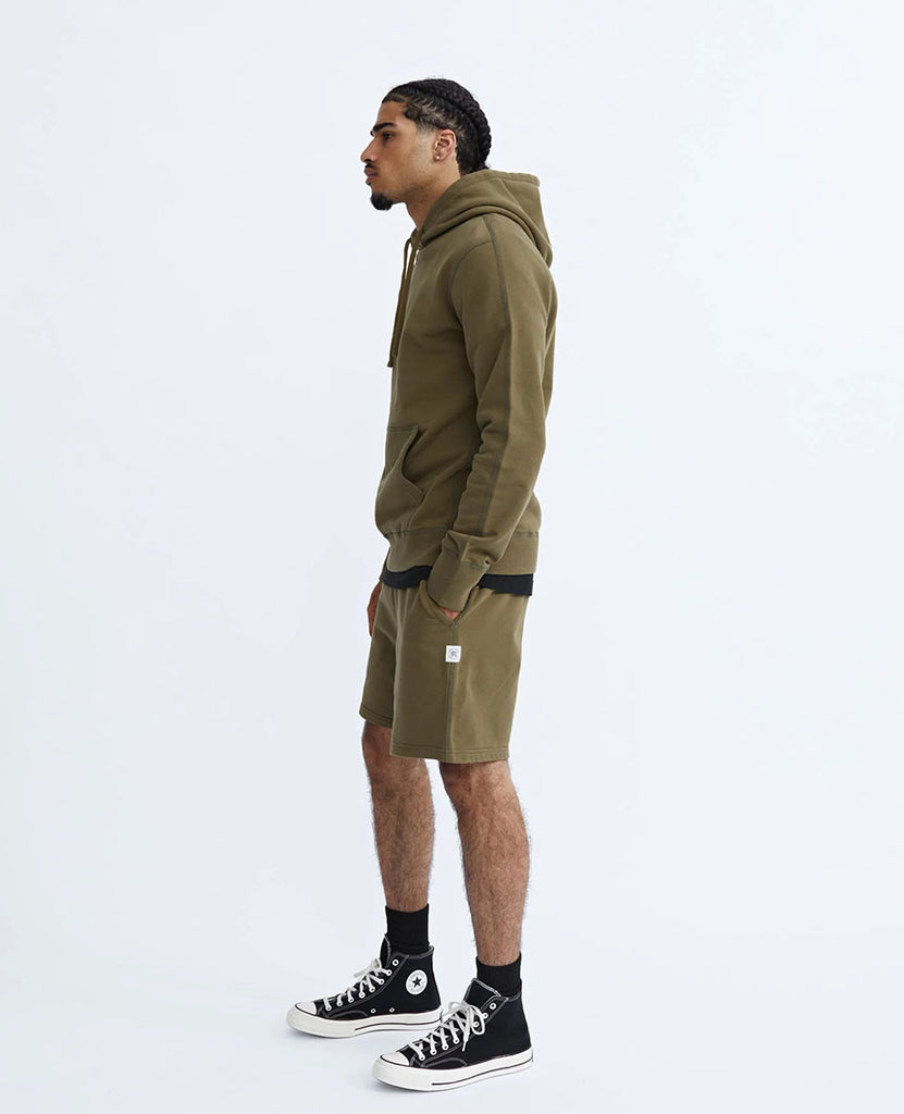 Signature pullover hoodie in a seasonal Moss colourway. Handcrafted in Vancouver from premium Midweight Terry for an ideal balance of comfort and structure. Designed with an athletic trim fit, semi-raglan sleeves, a rib-lined hood, and a rib-bound front pocket.
