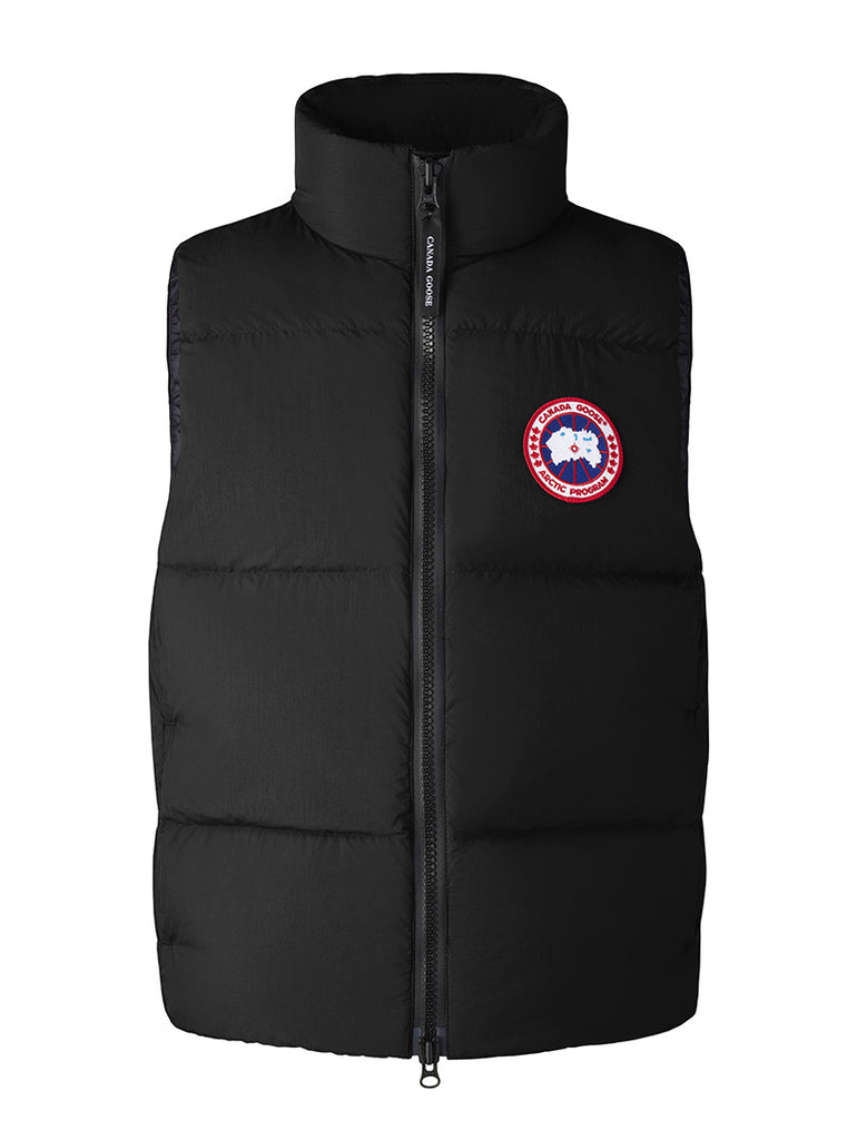The Lawrence Puffer Vest is crafted from Recycled Enduraluxe, a water-repellent fabric with a durable finish. Featuring a structured down-filled collar, a two-way zipper, and a longer back hem for added coverage.